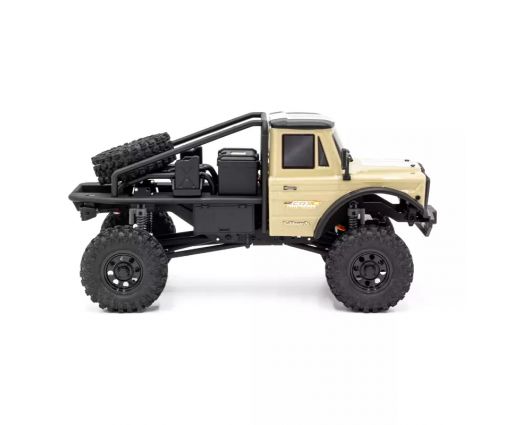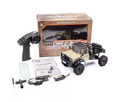 Nouvelle version Flat Cage Le CRX18 flat cage reprend les caractéristiques du CRX18. Il se différencie par son plateau arrière équipé d’un arceau et d’une roue de secours. D’autres accessoires réalistes complète également ce modèle. La version cage est légèrement plus courte et le plateau arrière autorise un plus grand angle d’attaque. Le CRX18 flat cage est disponible en couleur sable et argent.